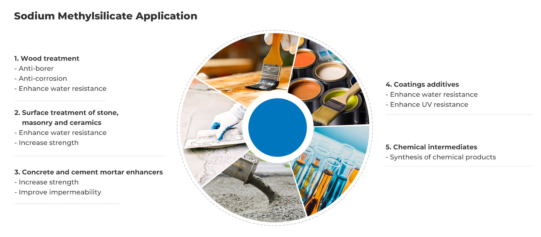 Med dessa utmärkta egenskaper har natriummetylsilikat breda tillämpningsmöjligheter inom många områden. Inom konstruktionsområdet kan den användas för att vattentäta ytterväggar, tak, källare och andra delar av byggnader, vilket effektivt förhindrar regnvattenläckage och skyddar byggnadsstrukturen. Om man tar ett höghus som ett exempel, efter att ha använt natriummetylsilikat för vattentätning av ytterväggarna, efter år av kraftigt regn, fanns det inget läckage på väggen, och antalet klagomål från invånarna sjönk avsevärt. Vid renovering av gamla bostadsområden användes natriummetylsilikat för att vattentäta taket, vilket avsevärt förlängde takets livslängd. .